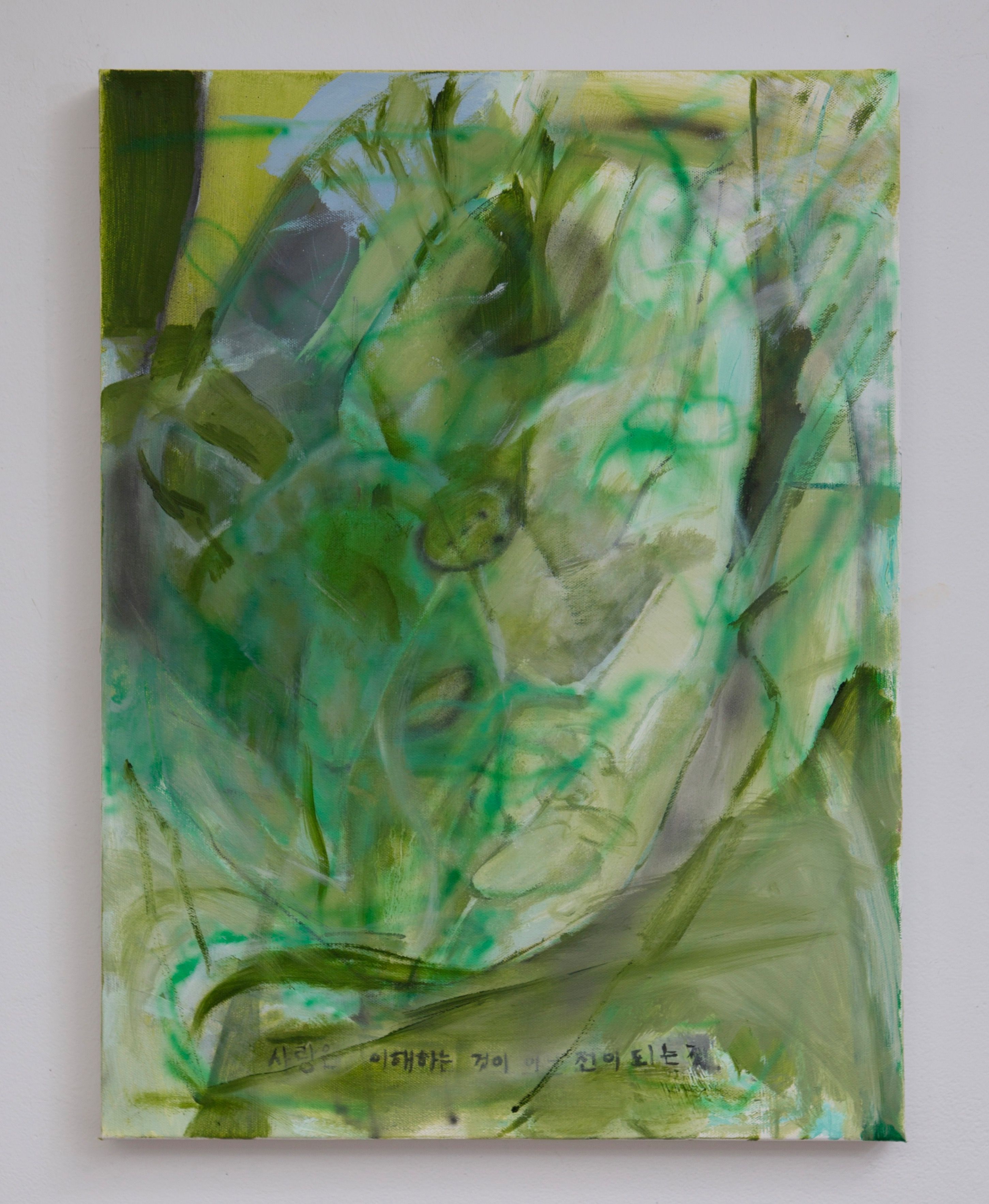 The series is my attempt in liberating art from its fate as a communicative medium. It is an endeavor to bring back authority and agency into painting. How we determine success of most things is centered around efficiency and professionalism in today's world. I think the same is applied to art these days. Being expected to effectively deliver rich information, art is constantly exposed to the dangers of becoming mere replications of, or a tool for, existing and already circulating ideas and objects. To create a collective nothing, in terms of communication outcomes, leaving just the vacant yet testimonial activations of paintings, is the only autonomous act I dare to achieve through my work.