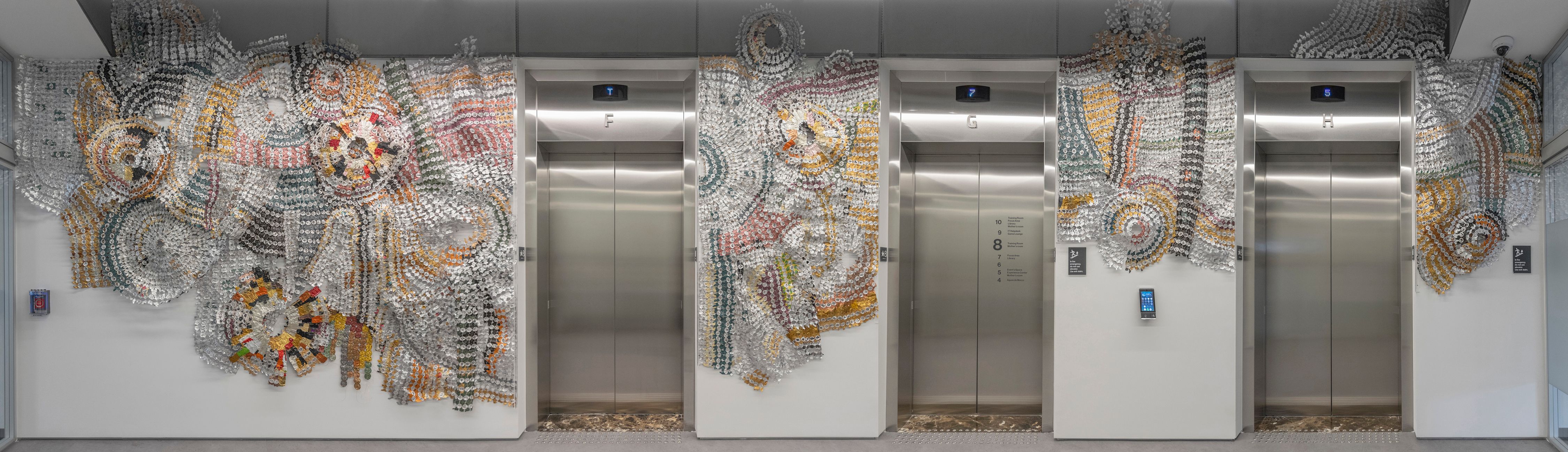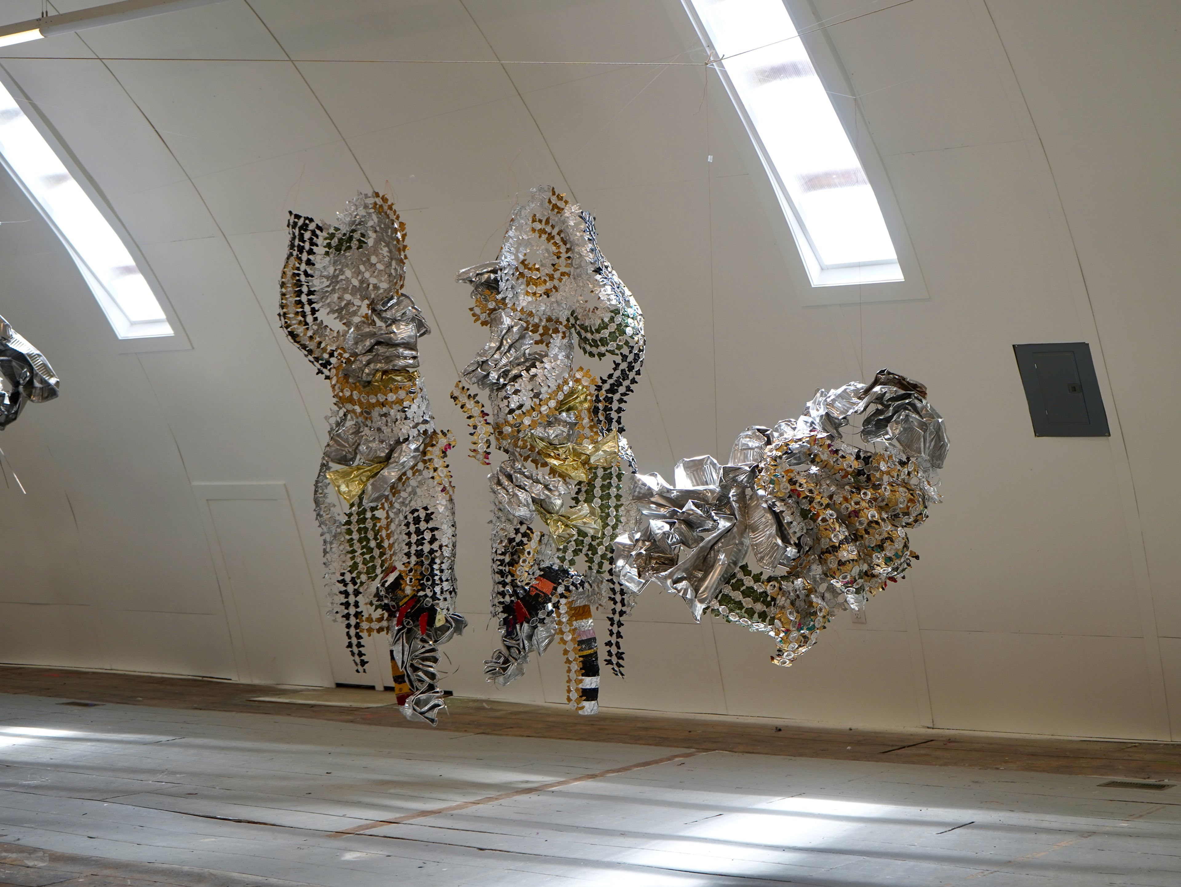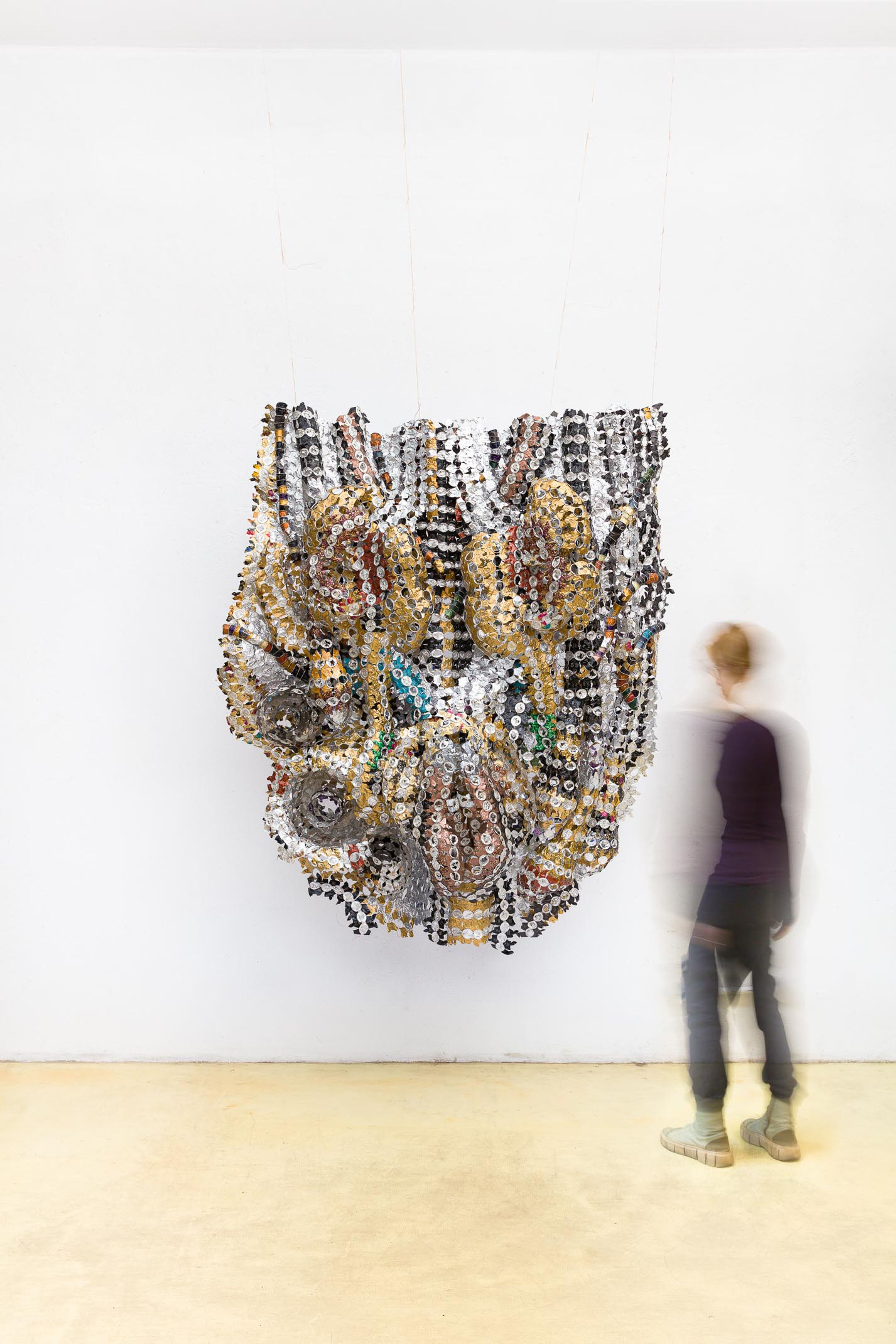 Artists who work with recycled materials have had a profound impact on helping me find my way working with recycled industrial materials. There are many great artists working today, and to name a few: Alice Hope, Virginia Fleck, Lisa hoke, El Anatsui, Moffat Takadiwa, Tracy Luff, Serge Attukwei, Michelle Stitzlein, Christina Massey, Ann Carrington, Annelies Horden.