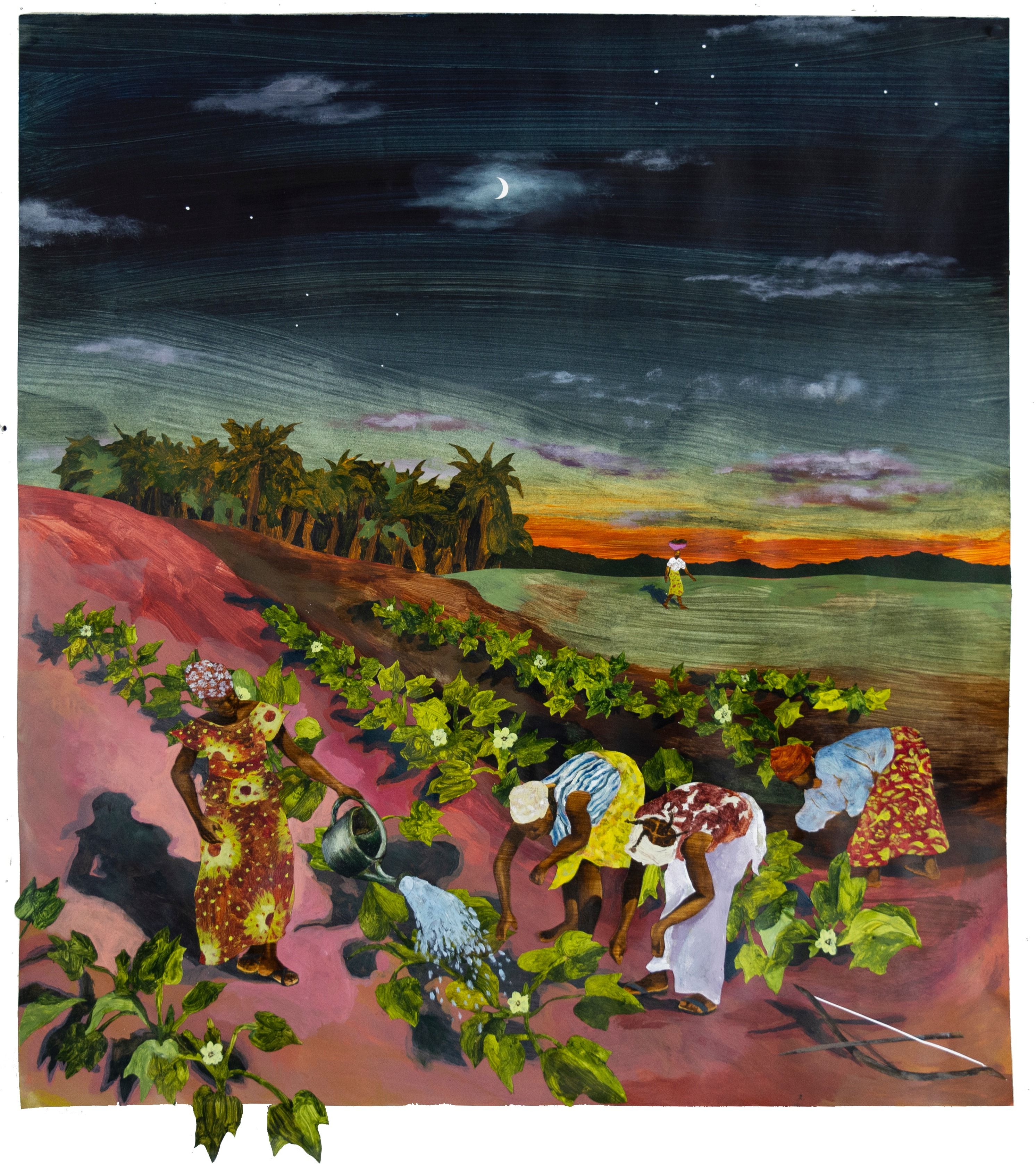 I’m interested in foraging history as a way of learning and adapting liberatory visions in my work. Historical revolutionary movements, structures, and ideas – specifically regarding agrarian movements – are a really important part of how I imagine the scenes in my work. Being informed by history allows me to better envision the “fictional” aspects of my work. Although I think “fiction” is a tricky word because it implies something completely untrue. I believe in the power of mobilization, and liberation struggle, so i don't consider my work to be inherently fictional. Rather, I see my work as historically informed manifestations of something that is within reach; a means of envisioning a resistance-based approach to decolonized food systems, land relationships, and labor practices.